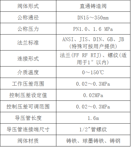 ZYC自力式壓差控制閥主要技術參數:
