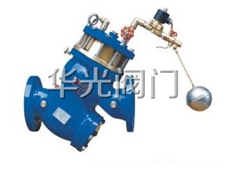 此閥在YQ98003過濾活塞式遙控浮球閥的基礎上加上220V電磁控制閥,能起三重保護作用,正常工作情況下通電開啓,與YQ98005過濾活塞式電動浮動球閥同時工作,隻有YQ98005浮球閥起控制水位作用, 當水池中小浮球閥失靈時,水位上升約10cm浮球控制開關動作。電磁閥斷電,切斷控制水路,主閥慢慢關閉,若總電源一旦停電,主閥關閉。能準無誤地控制水池的水位。