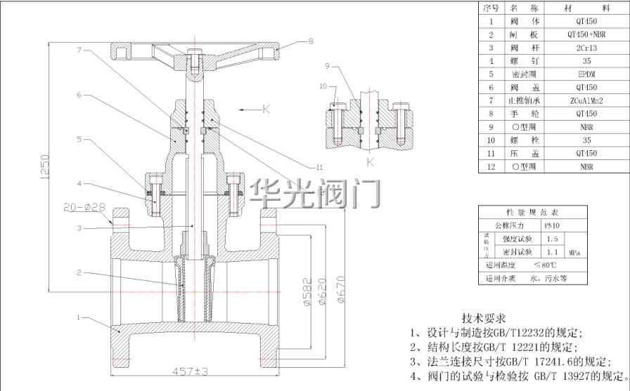 3、平底式閘座:傳統的閘閥往往在通水洗管後即因外物諸如石頭,木塊、水泥、鐵屑、雜物等淤積於閥底凹槽内,容易造成無法關閉緊密而形成漏水現象,彈性座封閘閥底部採用與水管機同的平底設計,不易造成雜物淤積,使流體暢通無阻。