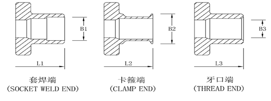 氣動(dòng)三通球閥(fá)有四種連接方式,分别爲:法蘭連接、套焊連接、卡箍連接、牙口連接,以下爲其部分連接方式示意圖: