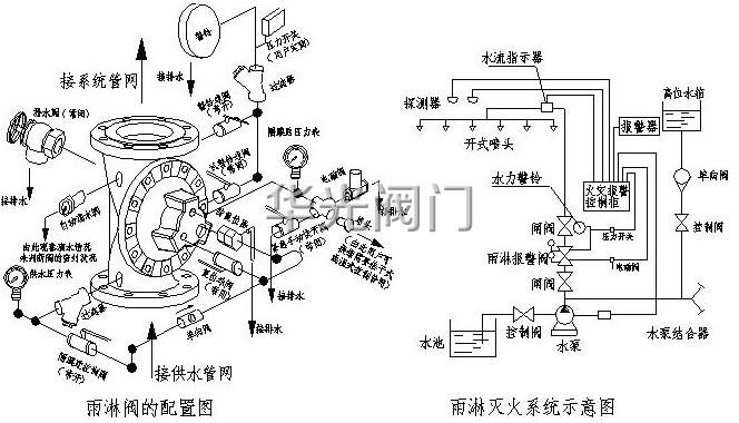 雨淋報(bào)警閥(fá)的雨淋閥配置及系統示意圖
